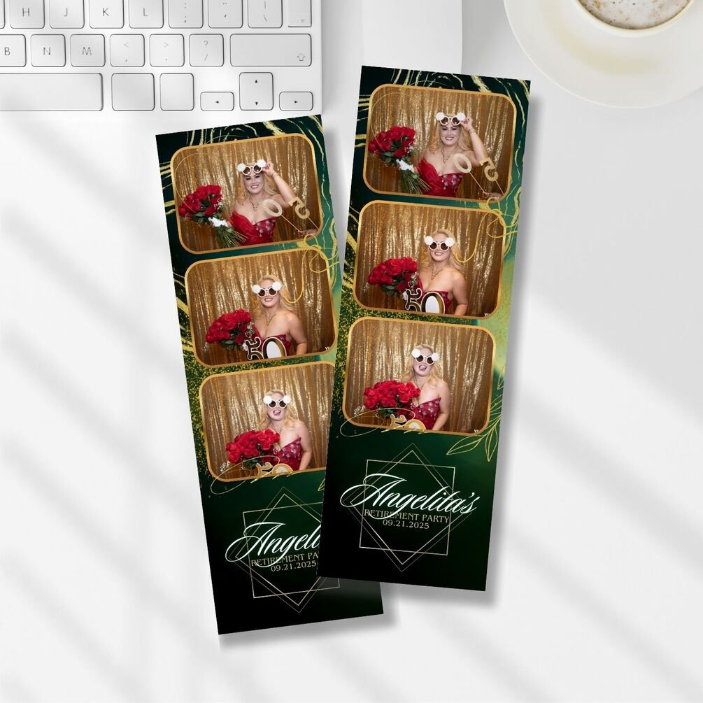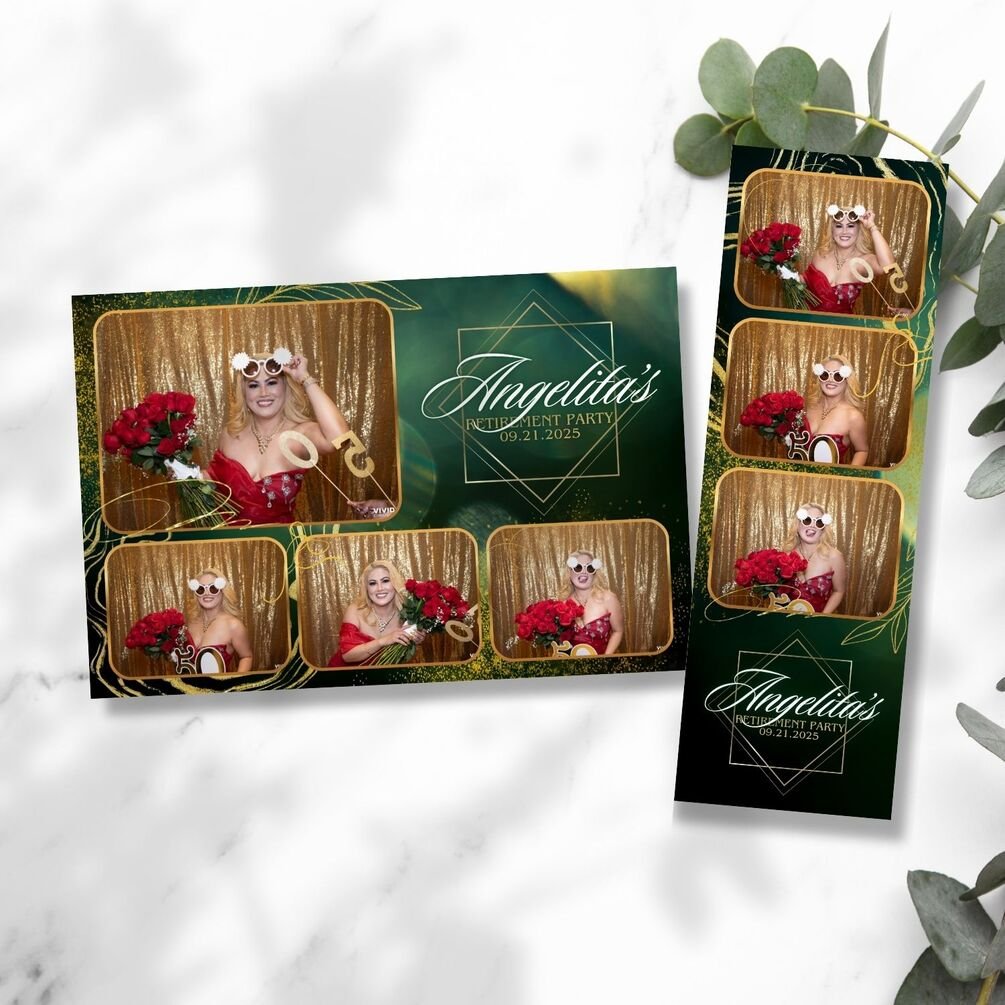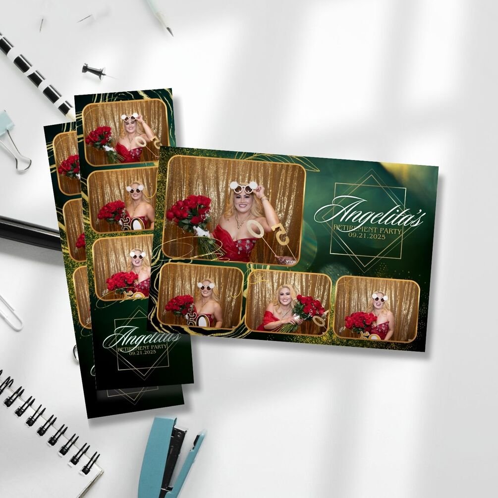 Celebrate a grand retirement in style with this elegant Green & Gold Canva photobooth template. Includes 4x6 and 2x6 layouts—perfect for office parties, send-offs, and milestone celebrations.